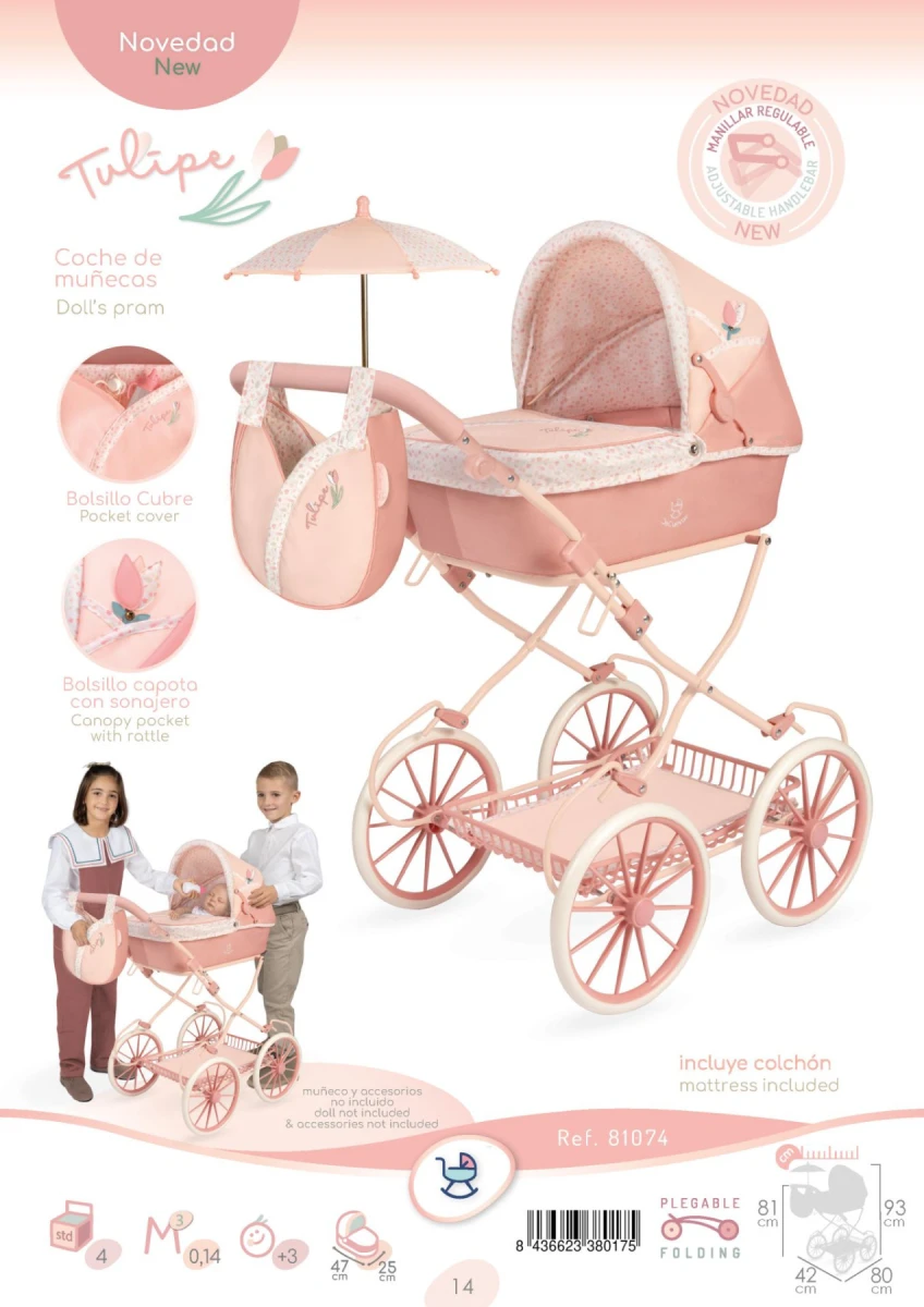 Skládací kočárek pro panenky s taškou a doplňky Tulipe 81 cm DeCuevas