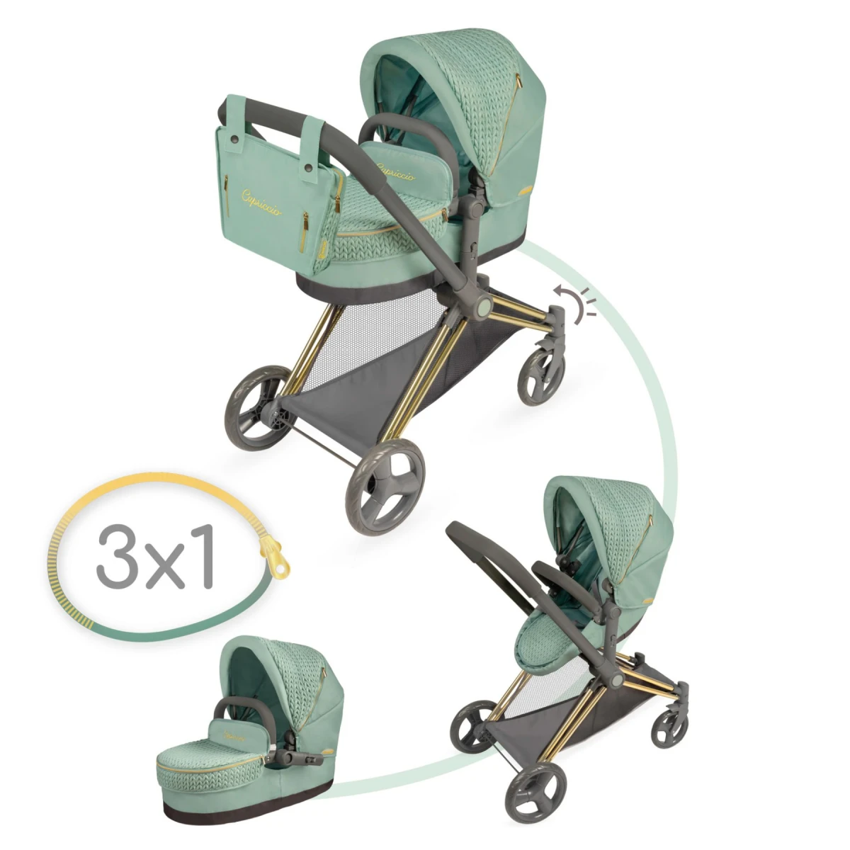 Skládací kočárek pro panenky 3 v 1 s taškou Capriccio 73 cm DeCuevas