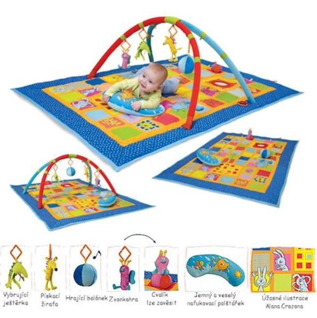 Na oblouky je možné připevnit také jiné oblíbené hračky dítěte. Bez použití oblouků je vhodná i pro přebalování. Barevné a roztomilé ilustrace stimulují interakci mezi rodičem a dítětem. Deka se dá snadno složit a přenášet, pro větší komfort je opatřena extra vycpávkou. Rozměry 100x150cm.