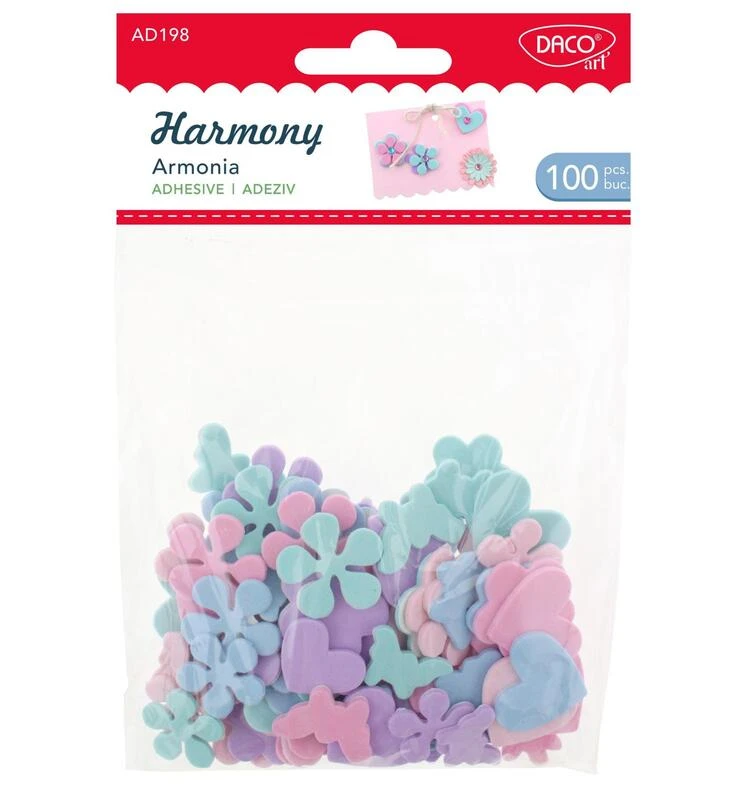 Obsahuje: 100 ks barevných motivů (motýlci, květina, srdce) různých velikostí.