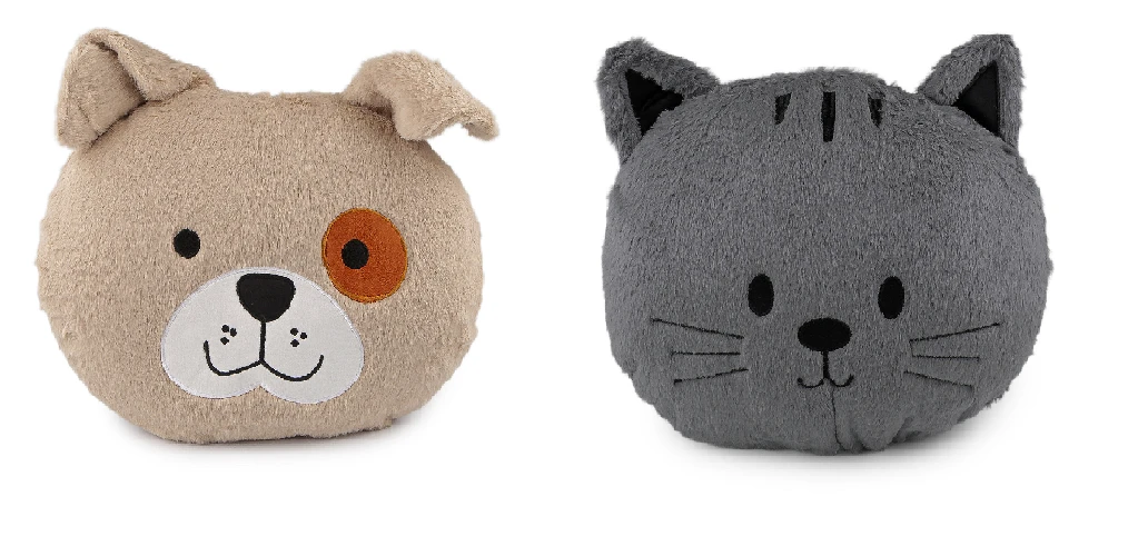 S rozměry cca 35 × 30 cm a tloušťkou 12 cm poskytuje pohodlnou oporu hlavy i hravé objetí při usínání nebo odpočinku.