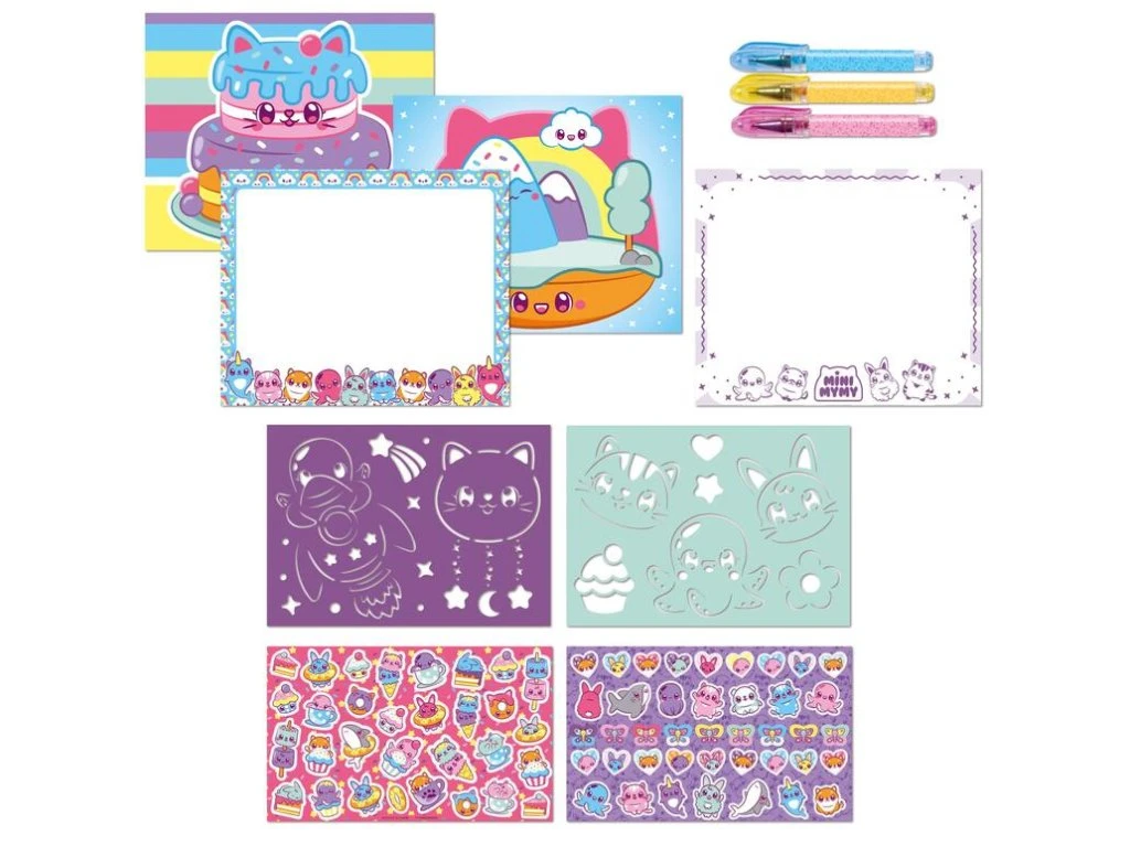 Obsahuje: 2 archy samolepek, 2 archy šablon, 3 herní scény, 20 kreslicích stránek, 3 gelové pera.