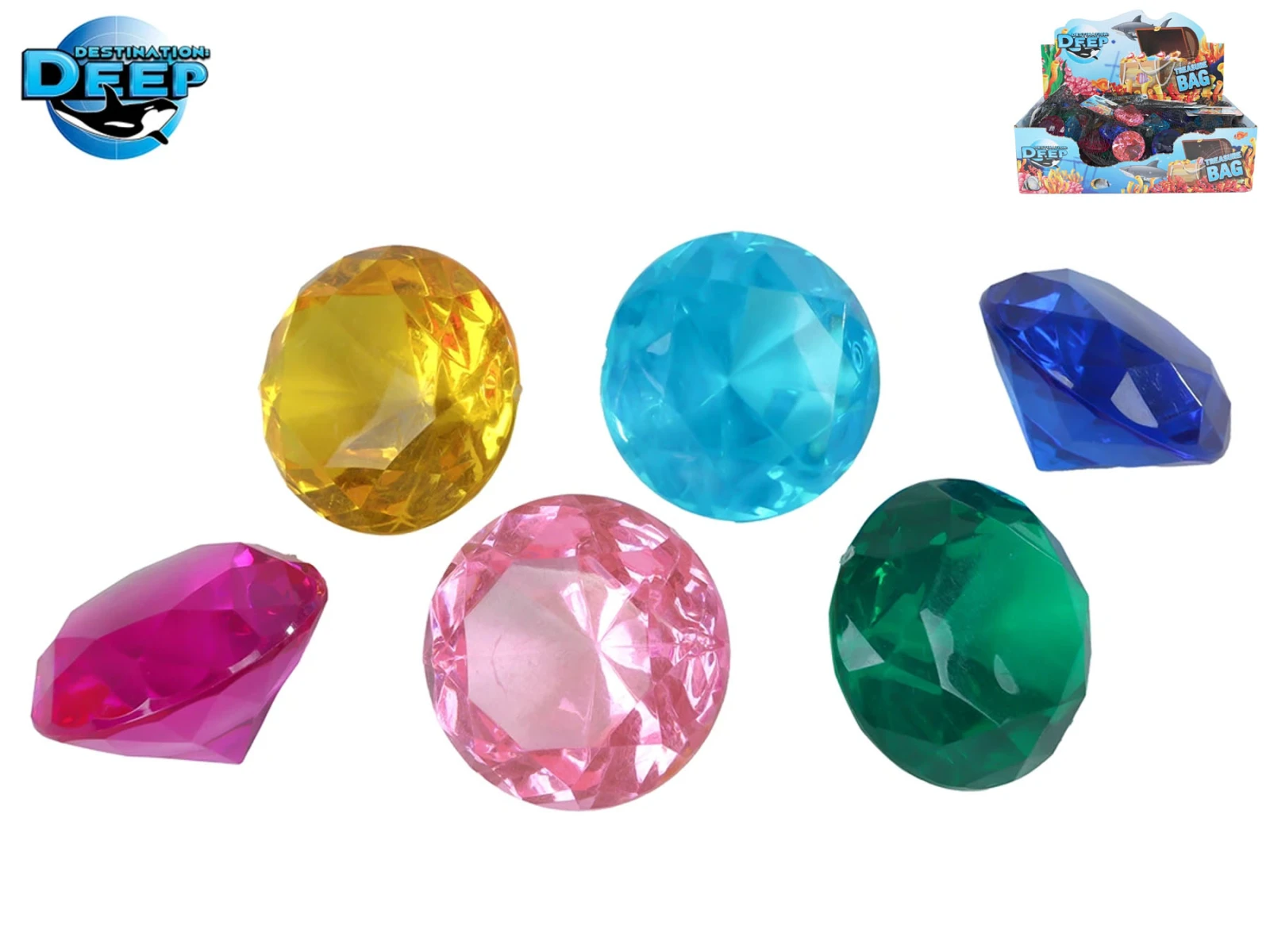Barevné plastové krystaly působí jako skutečné drahokamy a lákají děti k fantazijní hře, hledání pokladů, tvoření nebo dekoraci. Baleny jsou v praktické síťce, ideální pro ukládání i přenášení.Díky odolnému plastovému provedení jsou diamanty vhodné pro každodenní hraní doma i venku.