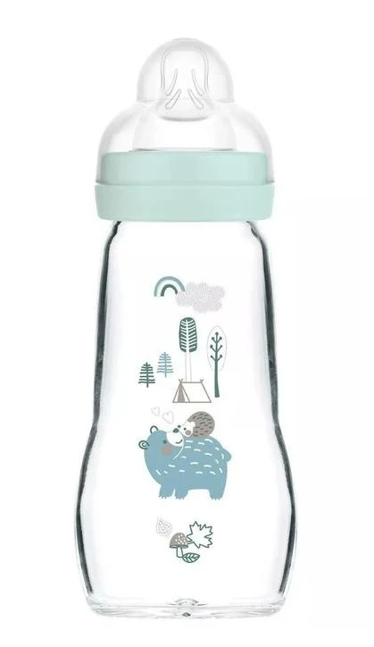 Dětská skleněná láhev MAM Feel Good o objemu 260 ml je prémiová kojenecká láhev navržená pro děti od ukončeného 2. měsíce věku. Je vyrobena z vysoce kvalitního borosilikátového skla, které je odolné proti tepelným šokům, což umožňuje bezpečné ohřívání, rychlé zchlazení i mytí v myčce.