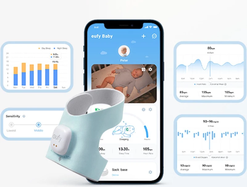 Systém je optimalizován pro přesné údaje a hlášení a poskytuje přizpůsobené sledování spánkového režimu díky optimalizovaným algoritmům. V reálném čase lze sledovat údaje o spánku, srdečním tepu a hladině kyslíku v krvi dítěte.