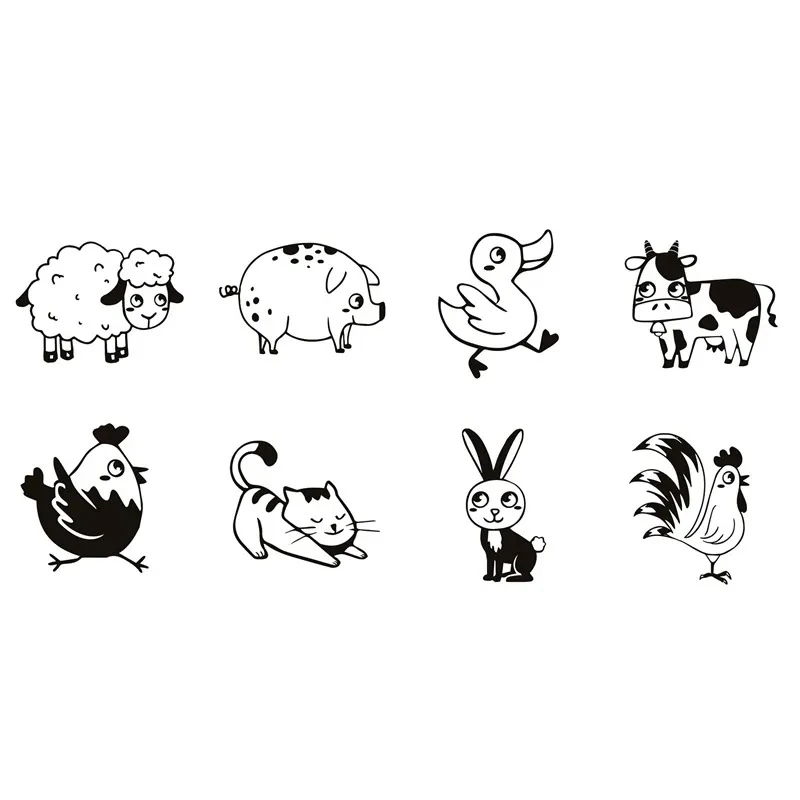 Balení obsahuje 8 razítek a razítkovací polštářek v černé barvě.