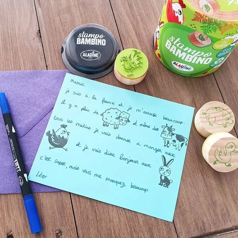 Aladine je francouzská značka, která se specializuje na výrobu dětských razítek. Razítka Aladine kromě otiskování obrázků rozvíjí u dětí zručnost, grafomotoriku, fantazii a jazykové kompetence. I přes tyto složité termíny, jsou razítka stále kreativní hračky, které děti milují a moc je baví.