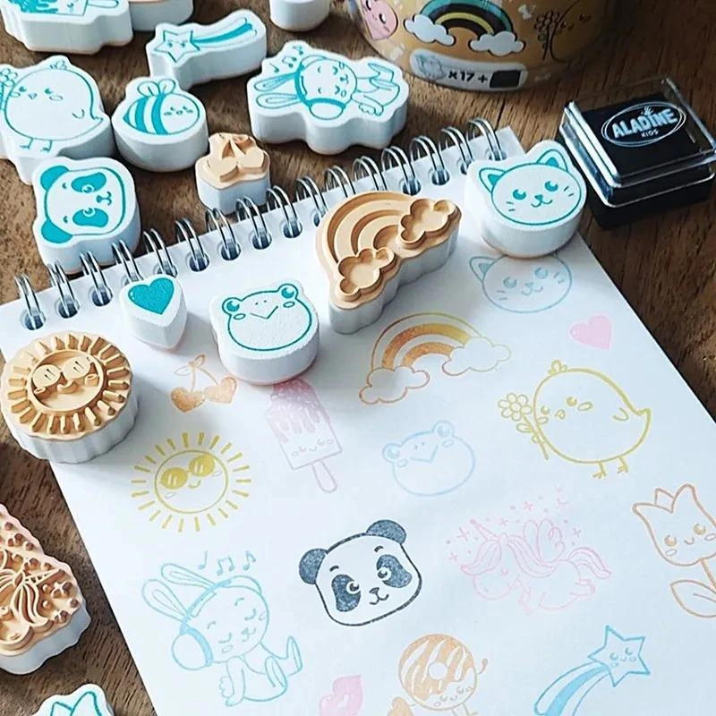 Dětská dřevěná razítka Aladine Stampo Funny 17 ks - Kawaii