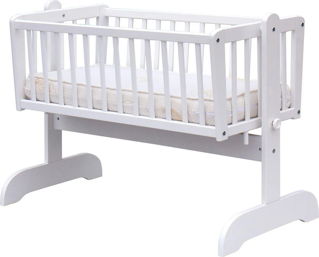 Krásná kolébka z borovicoveho dřeva je ideální pro usínání miminek.