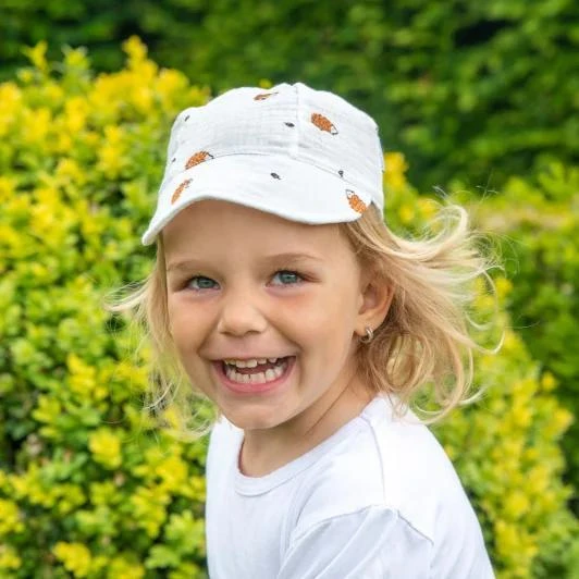 Lehká, vzdušná letní dětská kšiltovka z příjemné bavlny mušelín s potiskem ježka. V zadní části kšiltovky je všita guma k lepšímu přizpůsobení čepice na hlavě. Skvělý střih dětské letní kšiltovky, která padne jako ulitá.