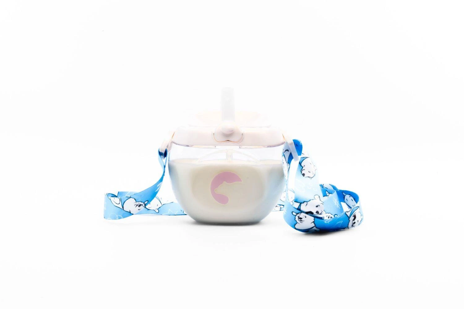 Lahvička je dodávána s praktickým popruhem, který lze snadno nastavit podle potřeb dítěte. Toto řešení oceníte zejména na hřišti, na výletě nebo kdykoli mimo domov.