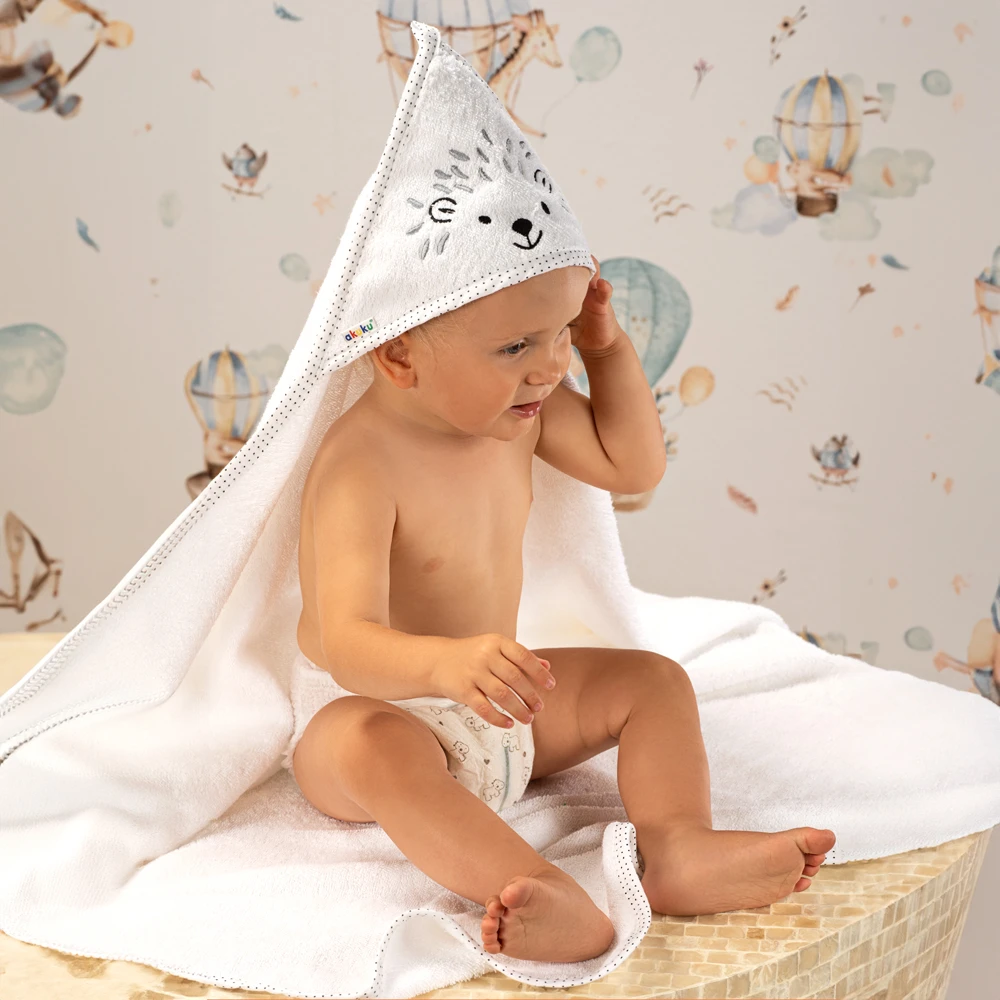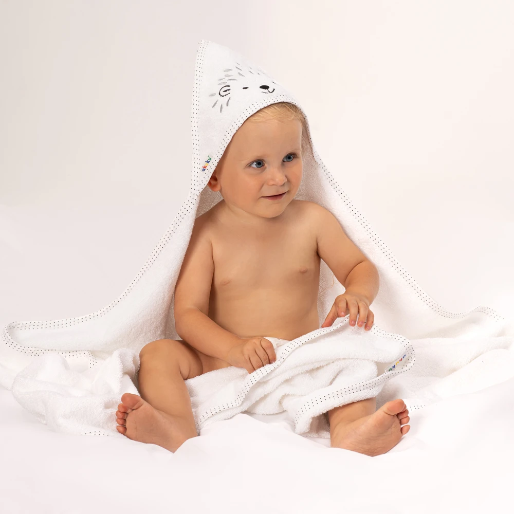 Dětská osuška s kapucí bílá Ježek 100x100 Akuku