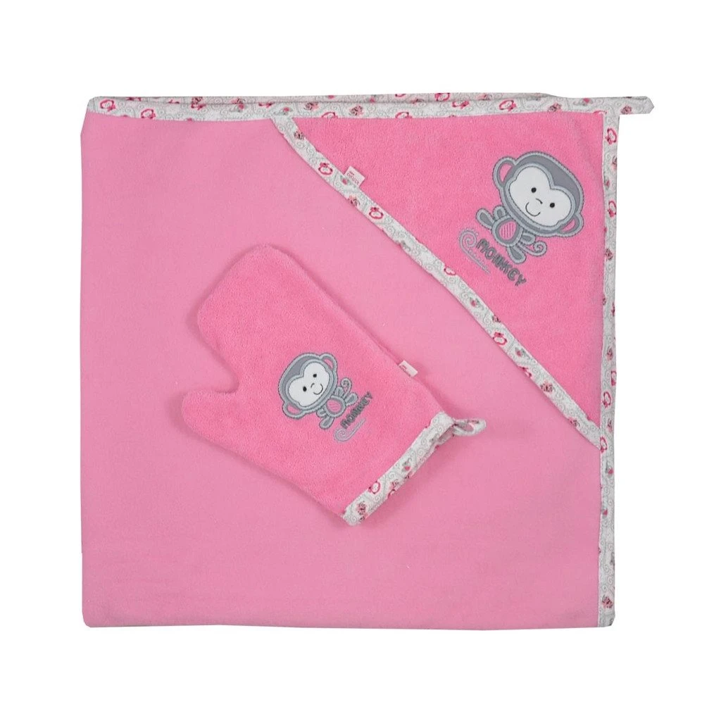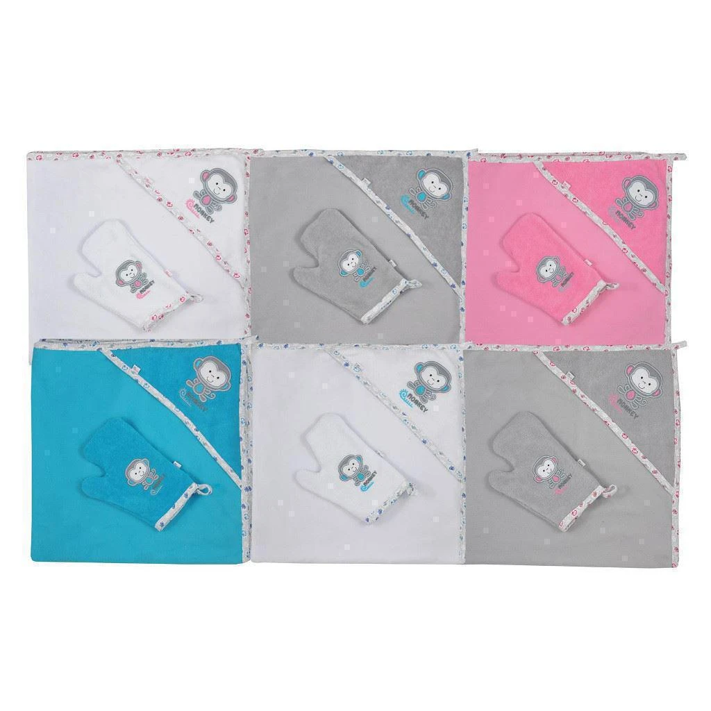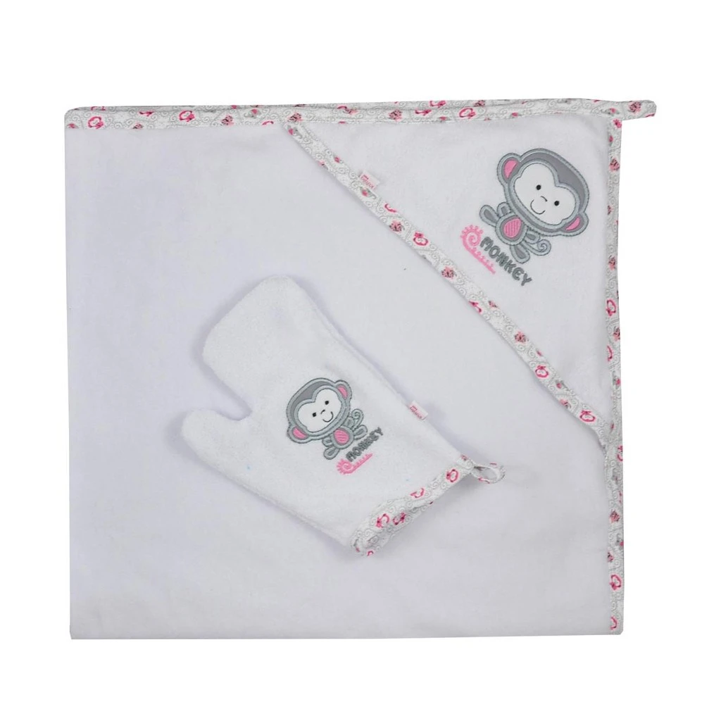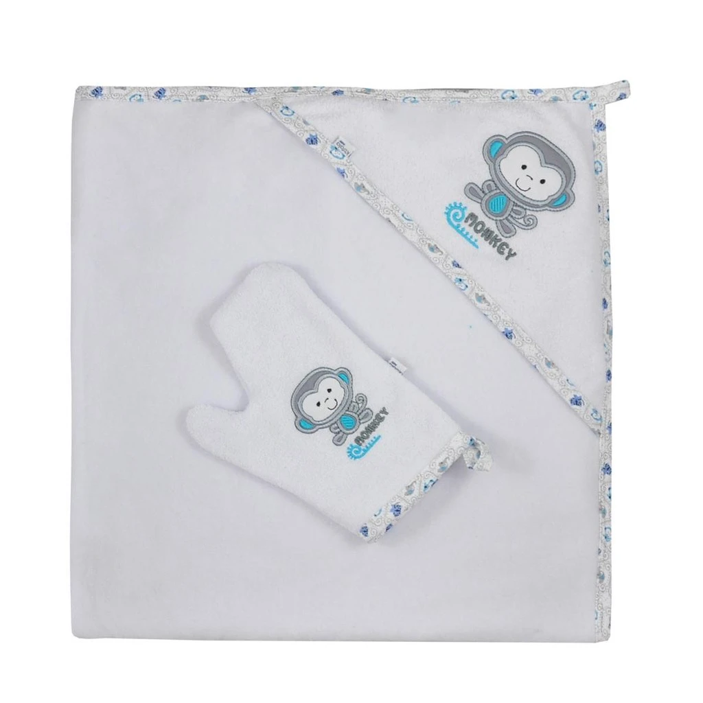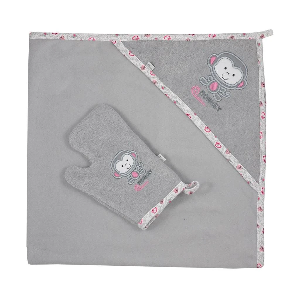 Dětská osuška Koala Jungle s kapucí a žínkou. Osušku zdobí krásný obrázek opičky a lem se vzorem. V balení je i praktická žínka. Osuška dítě po koupání zahřeje a kapuce chrání mokrou hlavičku dítěte před chladem. Rozměry: osuška: cca 90x90 cm. Složení: 85% bavlna, 15% polyester.