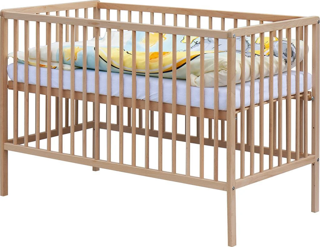 1. Dětská dřevěná postýlka 120 x 60 cm - přírodní, masiv borovice, 3 vyndavací příčky, 3 polohy roštu,