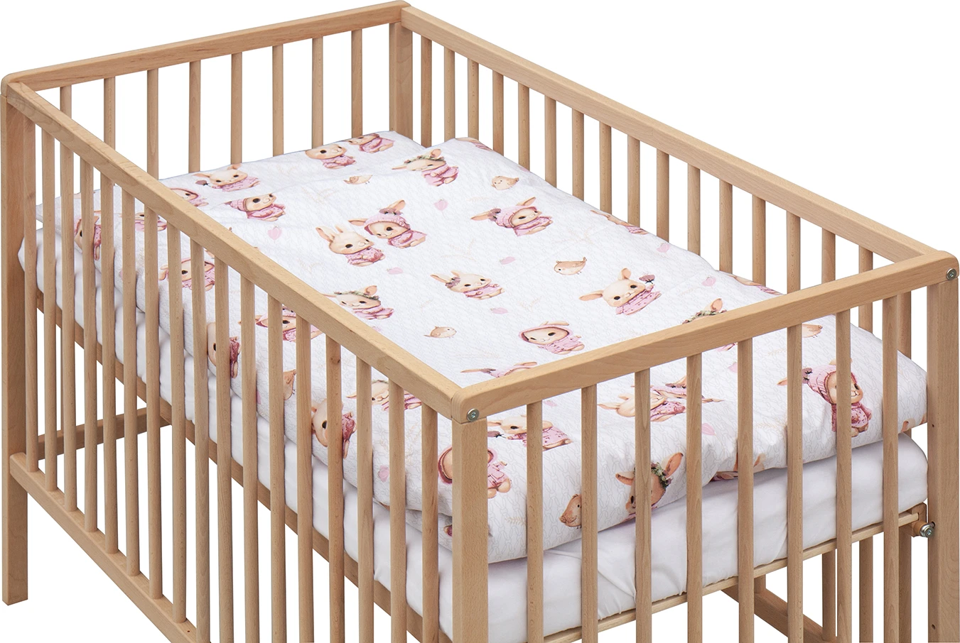 Jemný motiv s králíčkem dodá postýlce útulný a hravý vzhled, který krásně doplní každý dětský pokojíček.