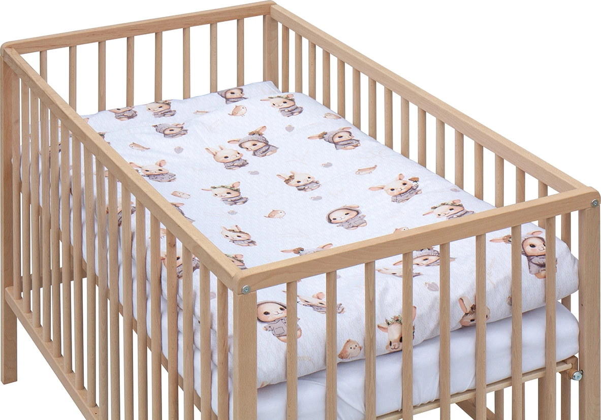 Dětská postýlka s kompletní výbavou přírodní 120 x 60 cm Králíček šedý Scarlett