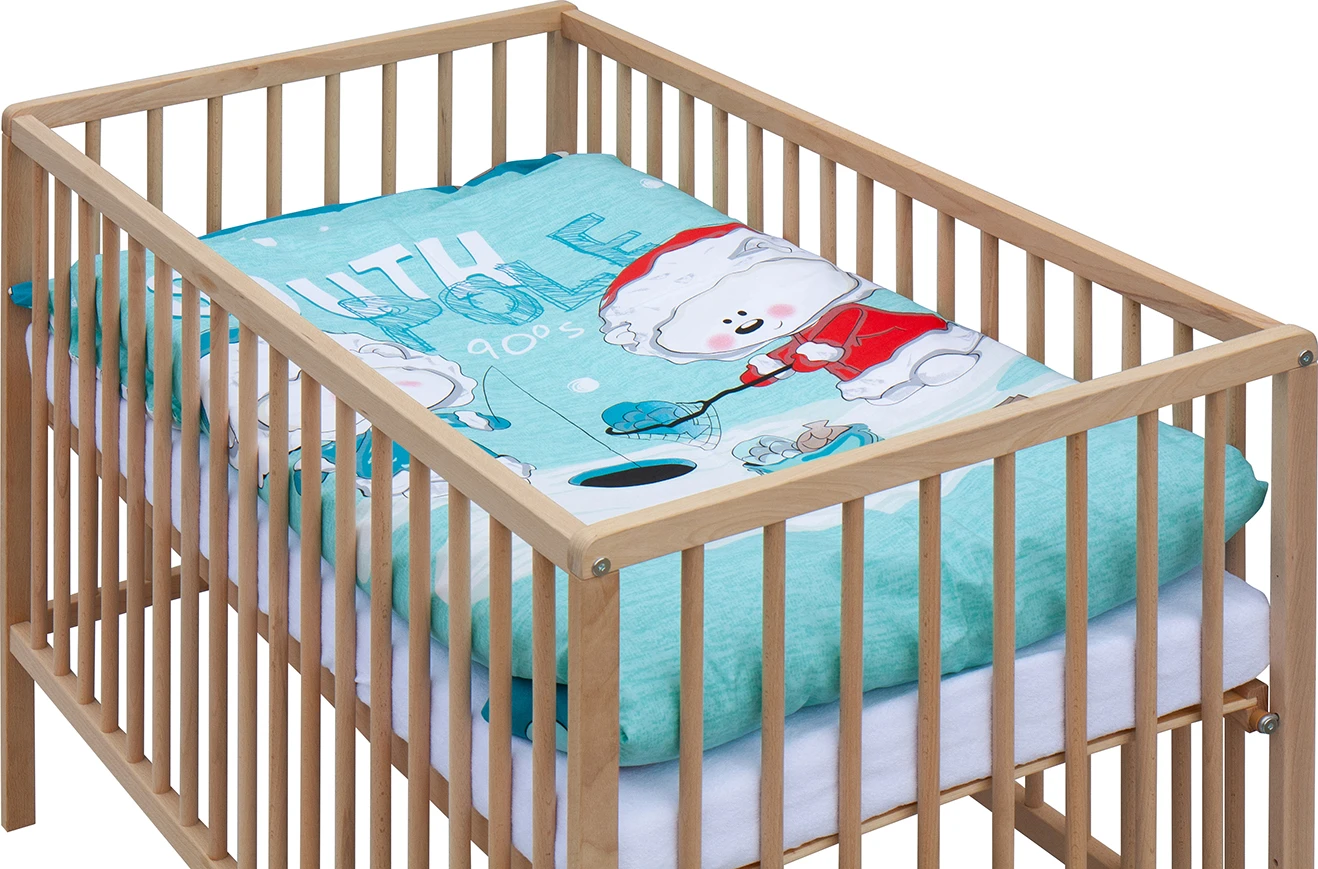 1. Dětská dřevěná postýlka 120 x 60 cm - přírodní, masiv borovice, 3 vyndavací příčky, 3 polohy roštu,