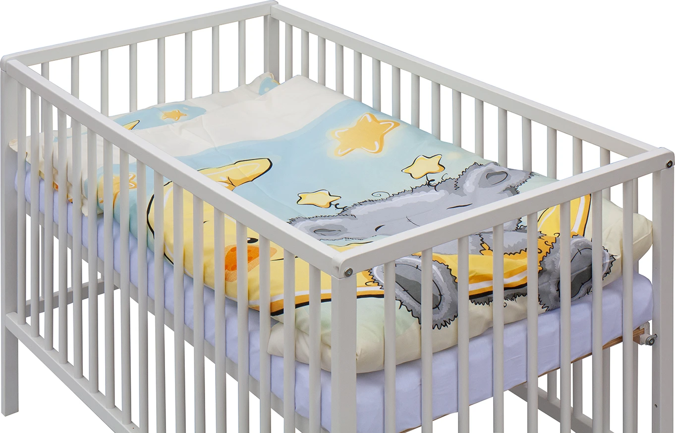 1. Dětská dřevěná postýlka 120x60 cm - bílá, masiv buk, 3 vyndavací příčky, 3 polohy roštu