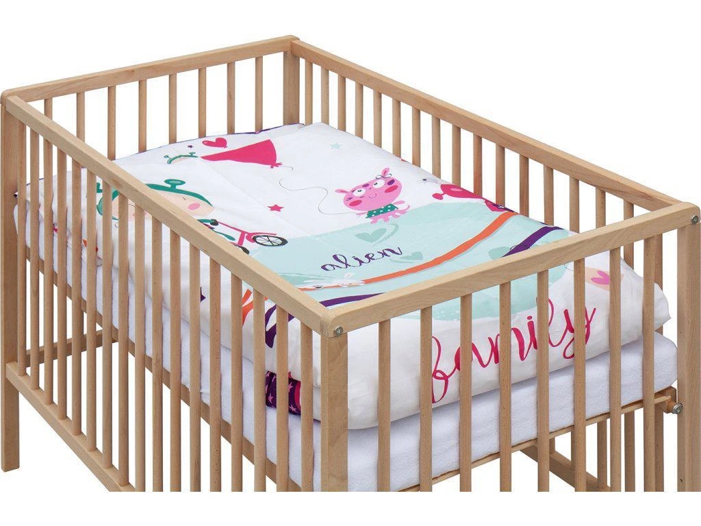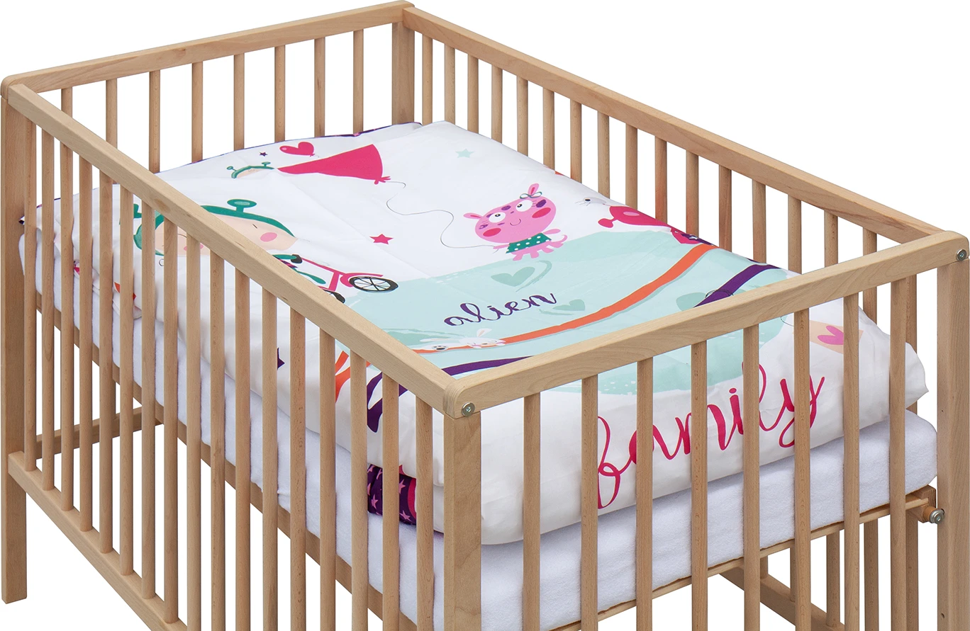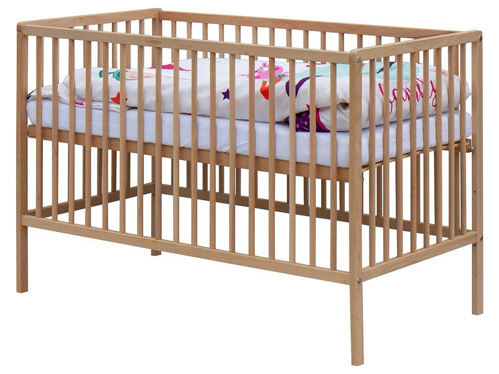 1. Dětská dřevěná postýlka 120 x 60 cm - přírodní, masiv borovice, 3 vyndavací příčky, 3 polohy roštu,