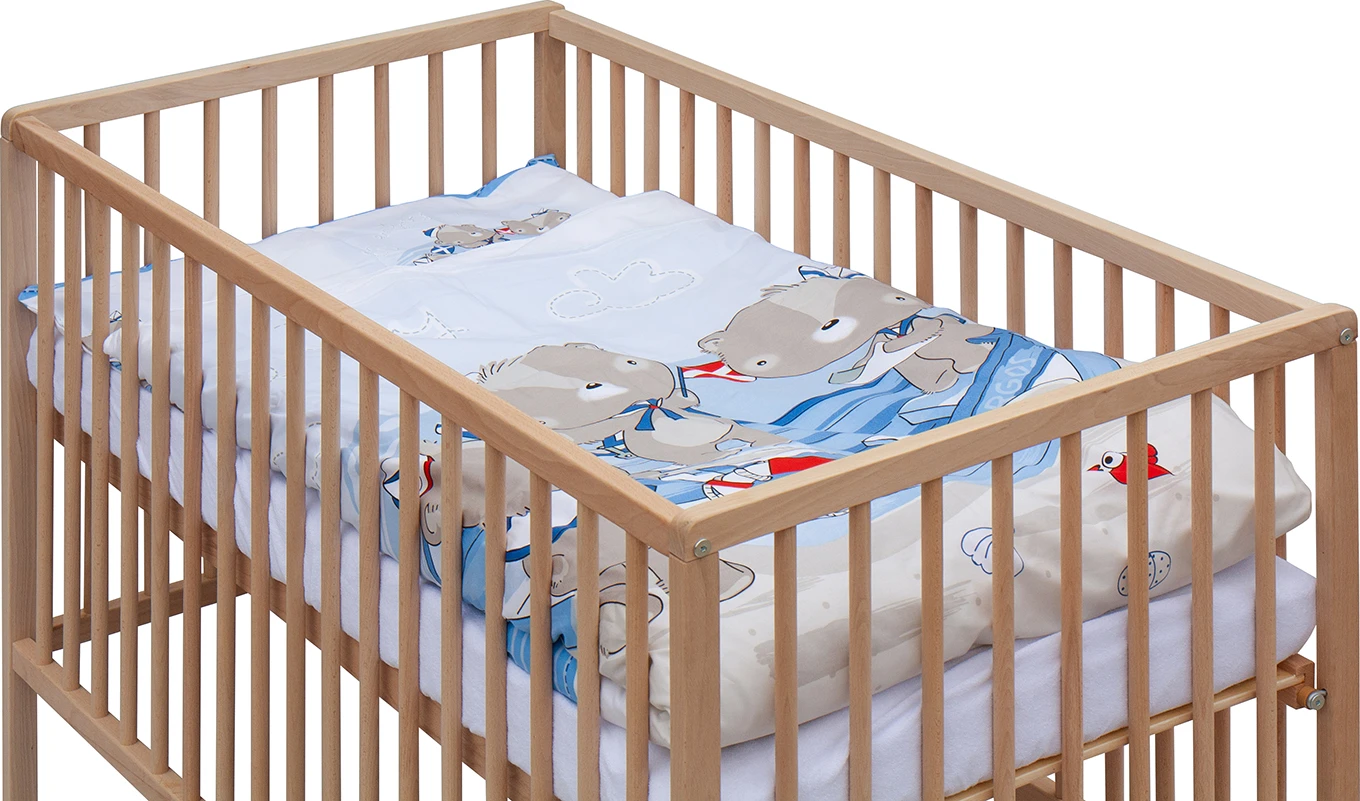 1. Dětská dřevěná postýlka 120 x 60 cm - přírodní, masiv borovice, 3 vyndavací příčky, 3 polohy roštu,