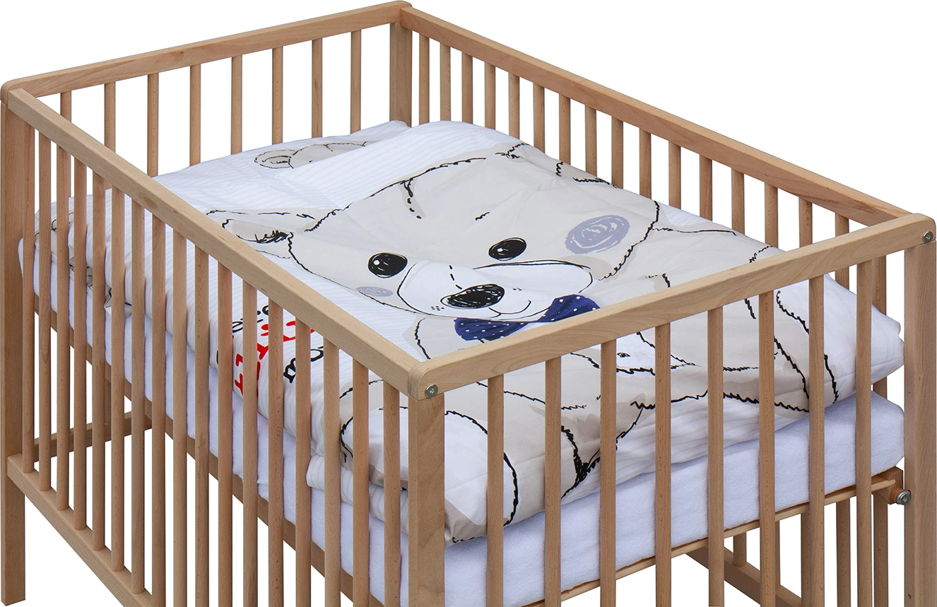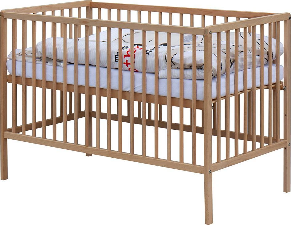 1. Dětská dřevěná postýlka 120 x 60 cm - přírodní, masiv borovice, 3 vyndavací příčky, 3 polohy roštu,