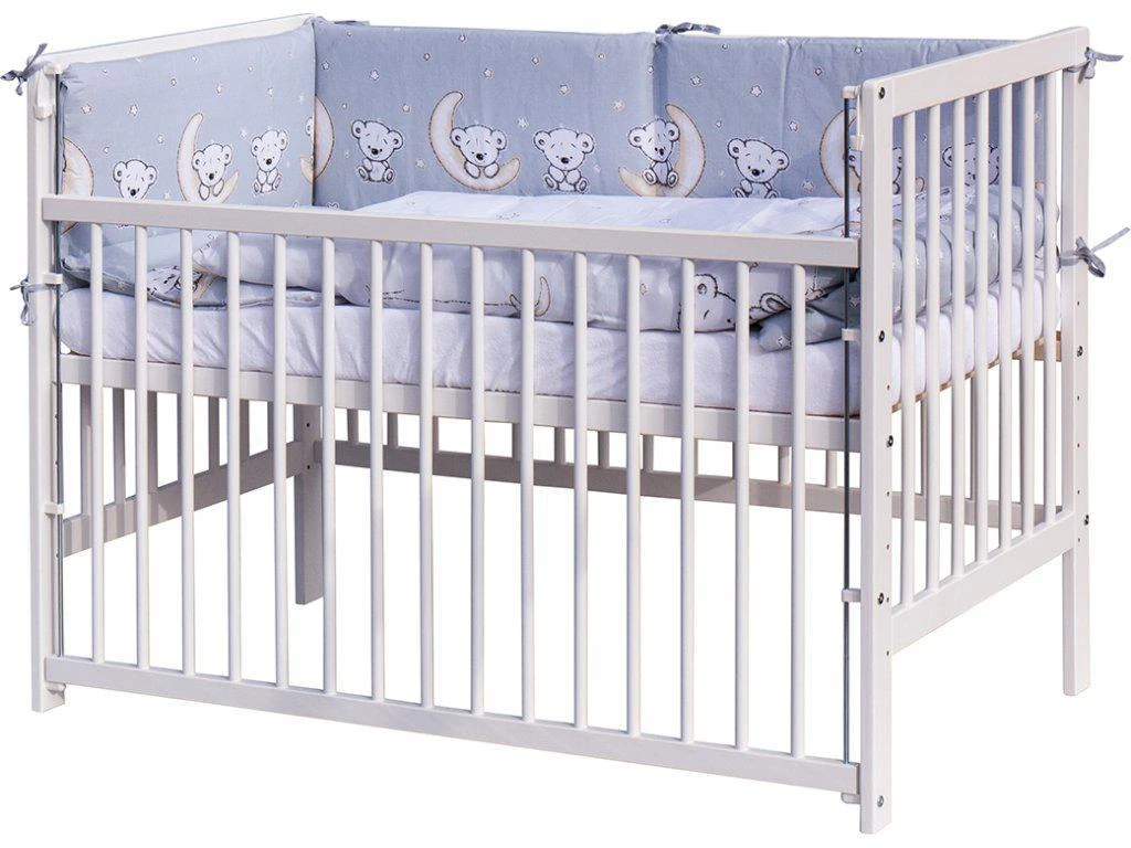 Dětská postýlka Toro bílá s kompletní šedou výbavou 120 x 60 cm Scarlett
