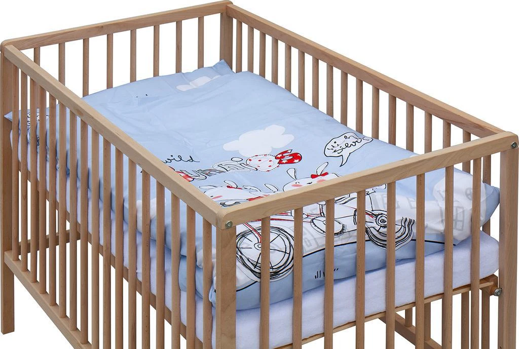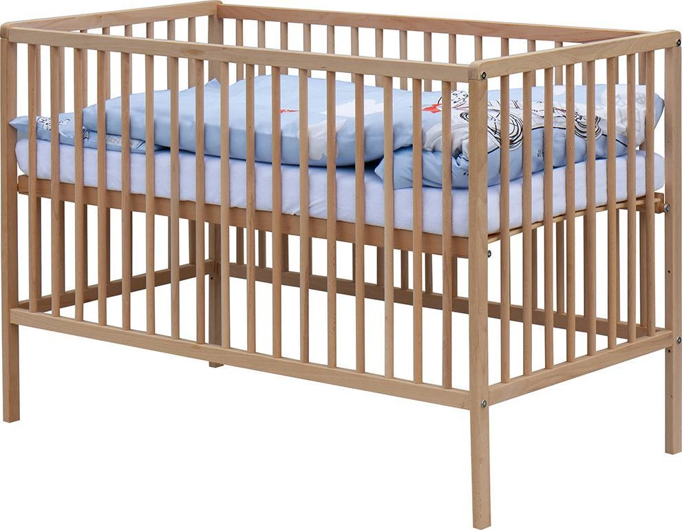 1. Dětská dřevěná postýlka 120 x 60 cm - přírodní, masiv borovice, 3 vyndavací příčky, 3 polohy roštu,
