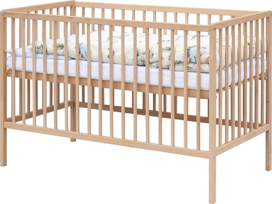 1. Dětská dřevěná postýlka 120 x 60 cm - přírodní, masiv buk, 3 vyndavací příčky, 2 polohy roštu,