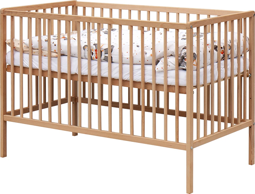 1. Dětská dřevěná postýlka 120 x 60 cm - přírodní, masiv buk, 3 vyndavací příčky, 2 polohy roštu,