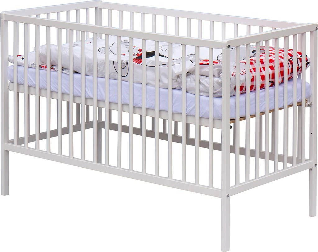 1. Dětská dřevěná postýlka 120x60 cm - bílá, masiv buk, 3 vyndavací příčky, 3 polohy roštu