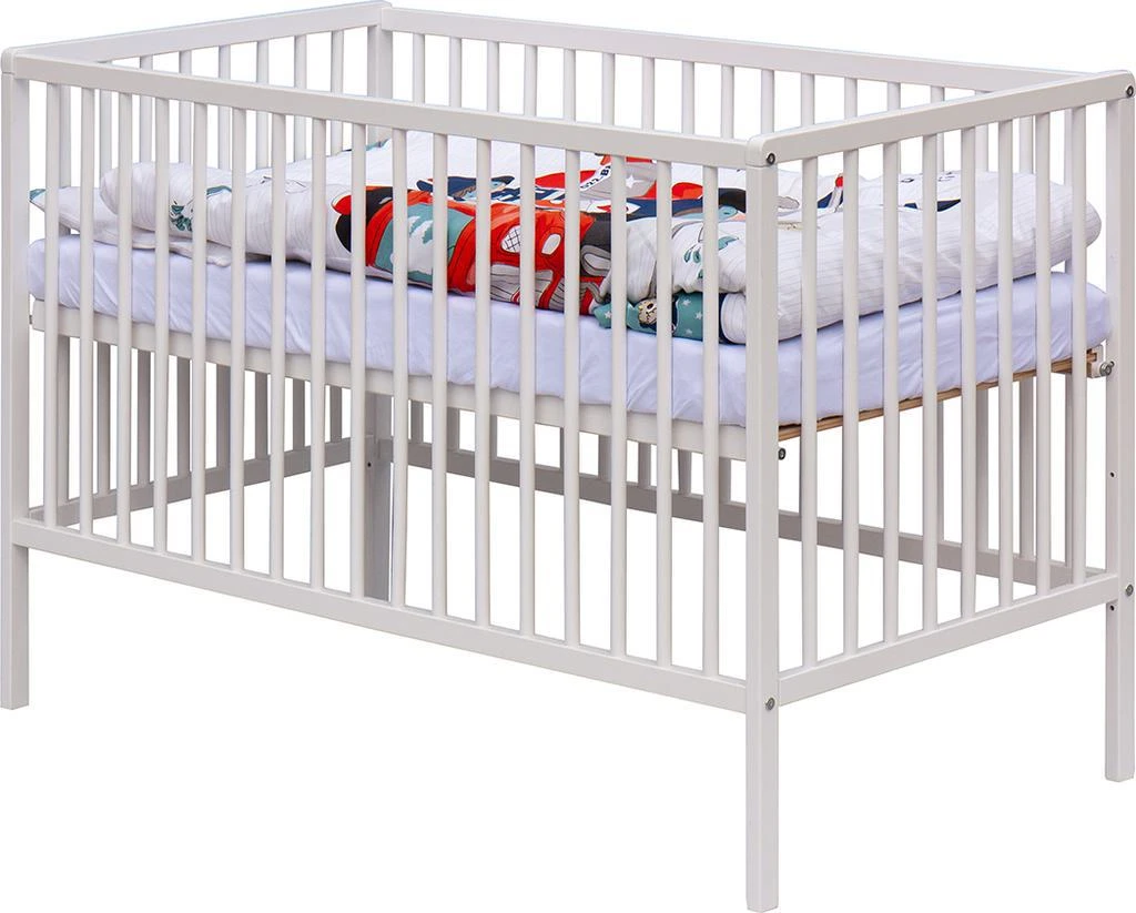 1. Dětská dřevěná postýlka 120x60 cm - bílá, masiv buk, 3 vyndavací příčky, 3 polohy roštu