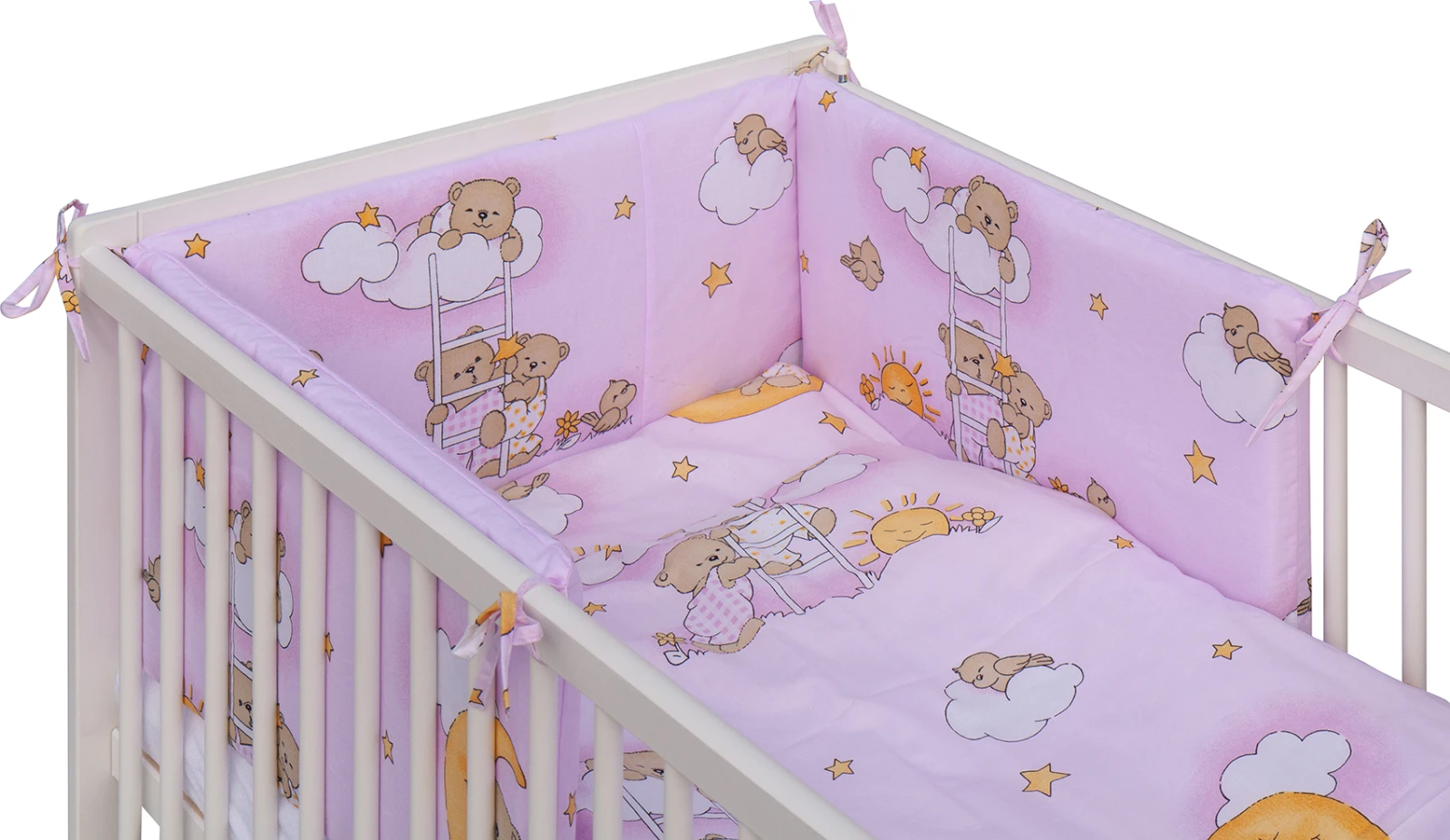 Dětská postýlka s kompletní výbavou 120 x 60 cm, mráček růžová Scarlett