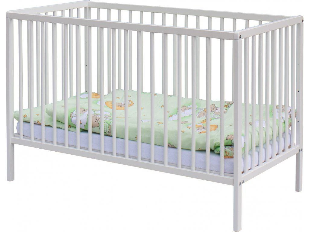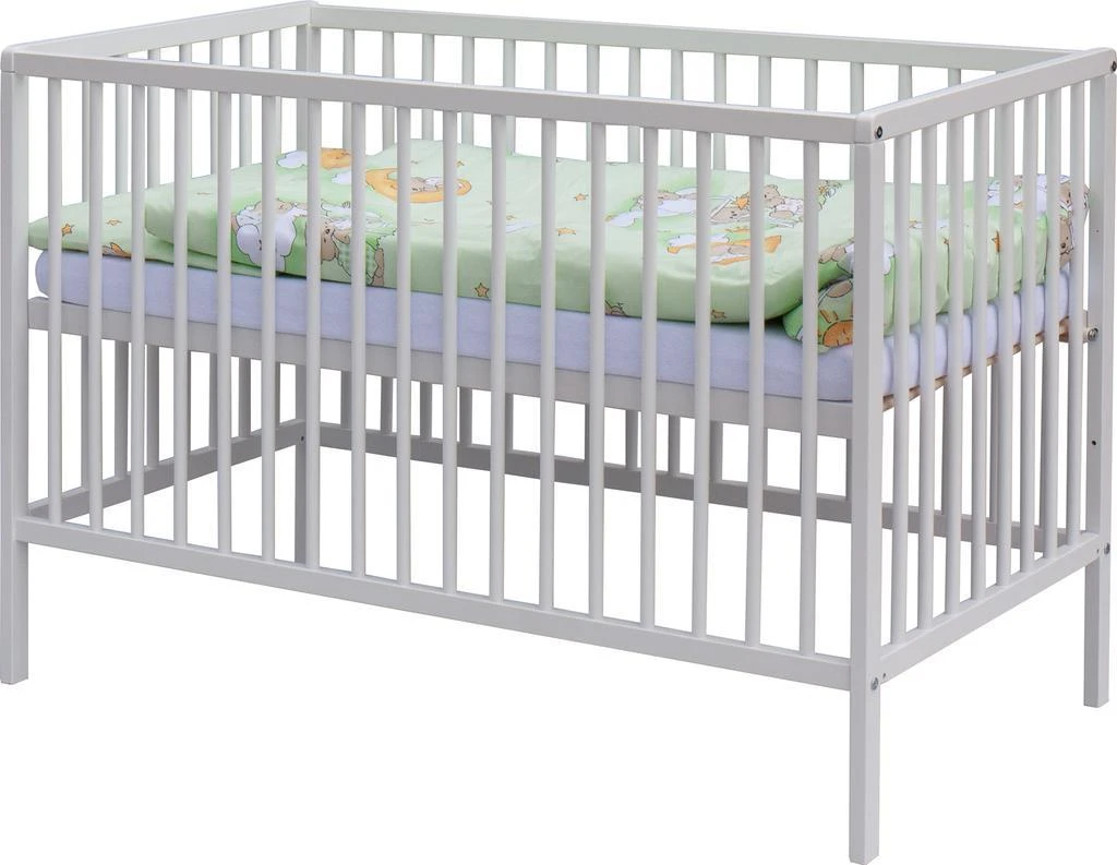 1. Dětská dřevěná postýlka 120 x 60 cm - bílá, masiv buk, 3 vyndavací příčky, 2 polohy roštu