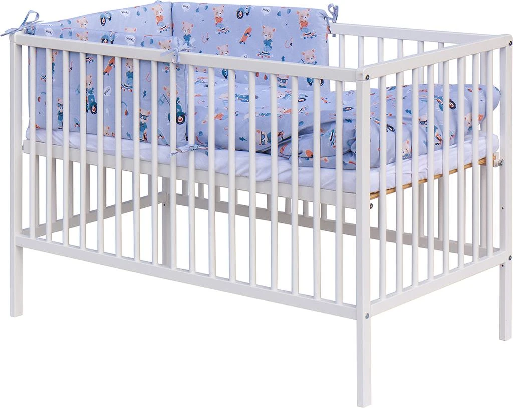 1. Dětská dřevěná postýlka 120x60 cm - bílá, masiv buk, 3 vyndavací příčky, 3 polohy roštu, nohy jsou předvrtané pro možné nasazení koleček