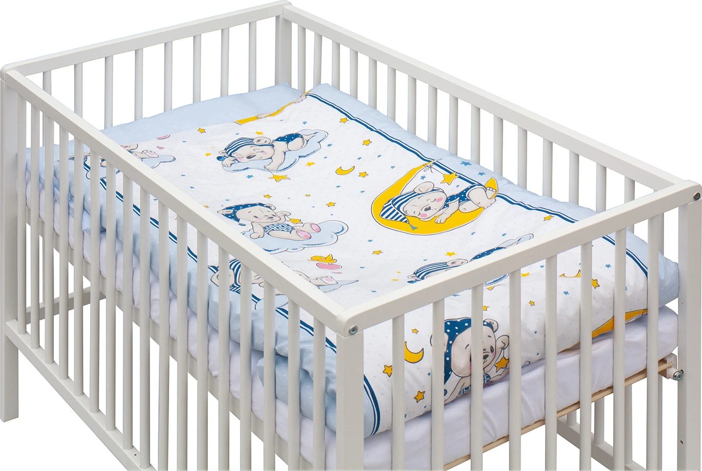 Praktické funkce, jako jsou vyndavací příčky a dvě polohy roštu, usnadňují manipulaci a přizpůsobení postýlky rostoucím potřebám dítěte. Součástí je kompletní výbava, takže máte vše připravené v jednom balení.
