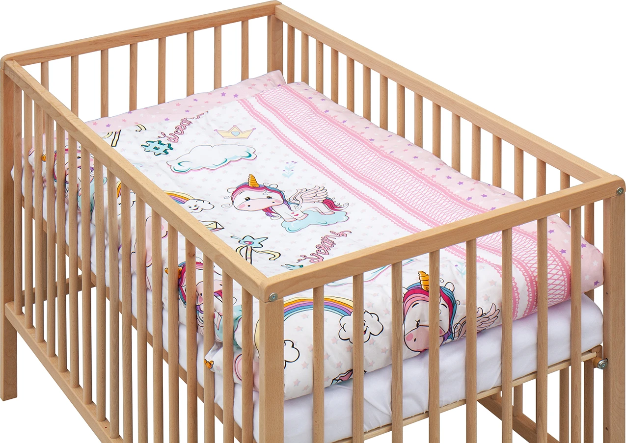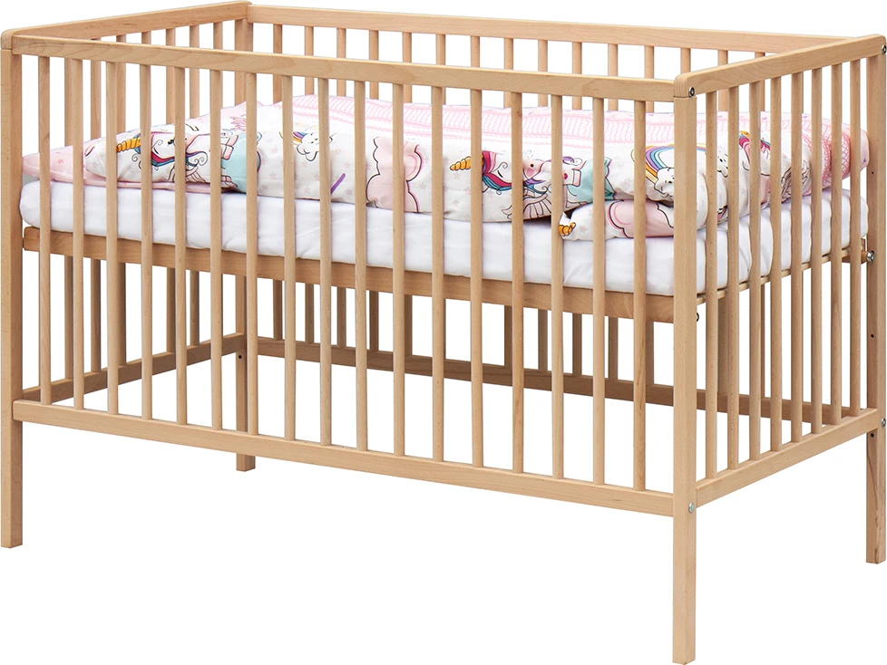 1. Dětská dřevěná postýlka 120 x 60 cm - přírodní, masiv buk, 3 vyndavací příčky, 2 polohy roštu,