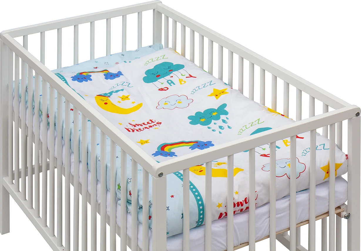 Praktické funkce, jako jsou vyndavací příčky a dvě polohy roštu, usnadňují manipulaci a přizpůsobení postýlky rostoucím potřebám dítěte. Součástí je kompletní výbava, takže máte vše připravené v jednom balení.