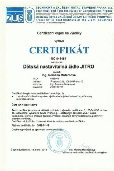 - rozdíl oproti židli Jitro Baby je, že je určena pro větší děti cca od 1,5 roku do 15 let - nemá totiž zvýšenou opěrku