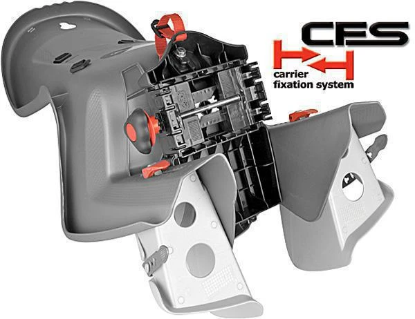 sedačka na nosič, podélně posuvná, upevnění dětské sedačky bez nářadí, spodní část sedačky se pevně připojuje k nosiči pomocí kolečka, tříbodový pás, pro děti do hmotnosti 22kg. Ergonomický tvar pro použití přilby, reflexní prvek, nastavitelné stupačky ve čtyřech polohách, šířka 398 mm, výška 756 mm, hloubka 344 mm, sedačky Polisport nejsou určeny na montáž karbonových a celoodpružených rámů.
