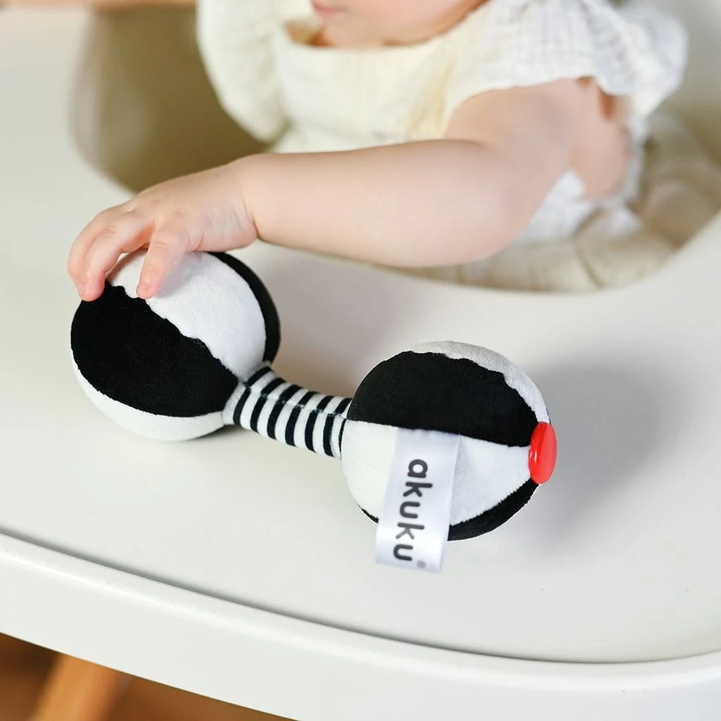 Dětská senzorická kontrastní hračka s chrastítkem Akuku Činka