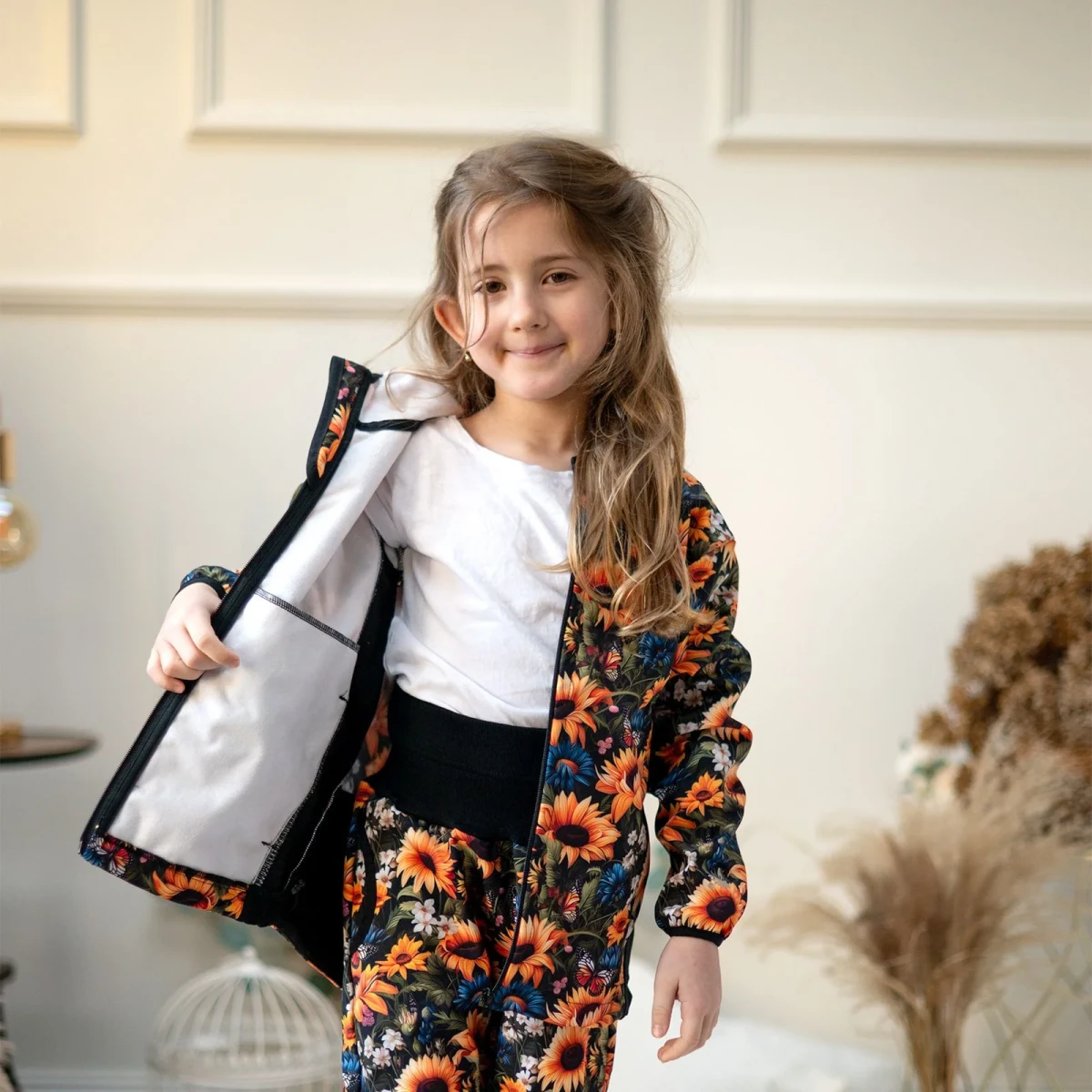 Dětská softshellová bunda Duo Slunečnice je navržená tak, aby byla nejen funkční, ale i pohodlná.