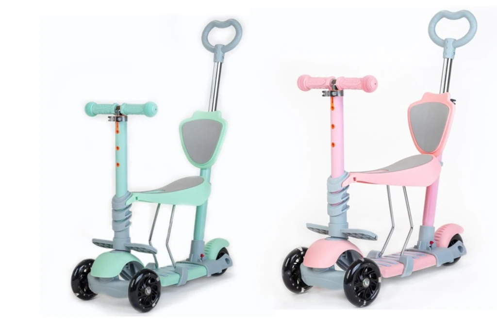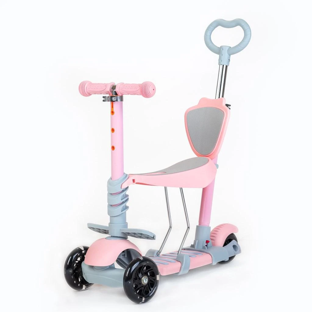 Tuto koloběžku lze snadno přizpůsobit podle vašich potřeb: můžete ji využívat s pohodlným sedátkem nebo jen jako klasickou koloběžku bez sedátka. K dispozici je také volba s vodící tyčí pro rodičovskou kontrolu nebo bez tyče pro samostatnou jízdu.