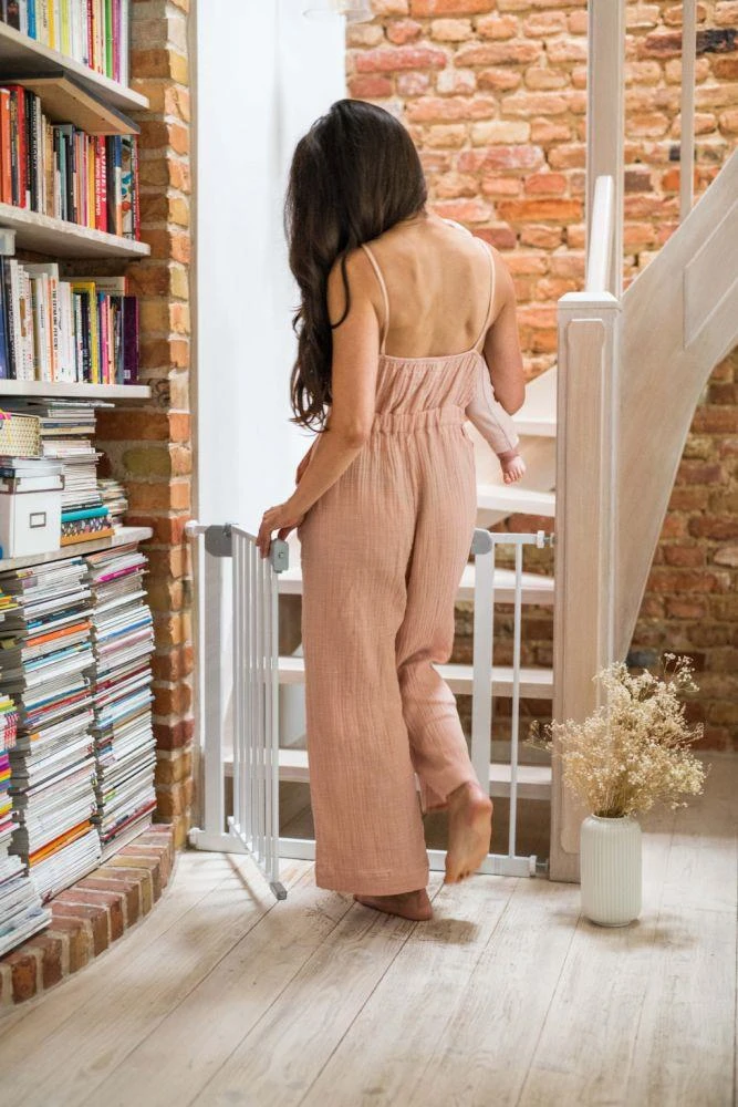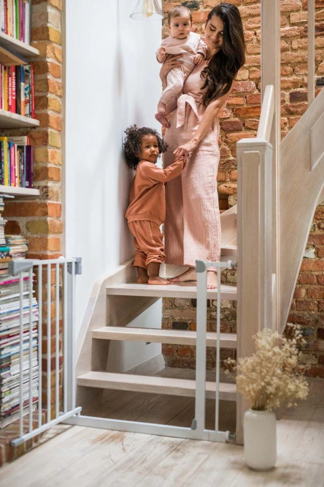 - Pro zajištění Vašeho pohodlí a univerzálního použití je zábrana MoMi PAXI navržena tak, aby ji bylo možné otevírat oběma směry. Navíc se při jemném zatažení automaticky zavře, což zajistí, že se při přenášení dítěte nemusíte ohýbat
