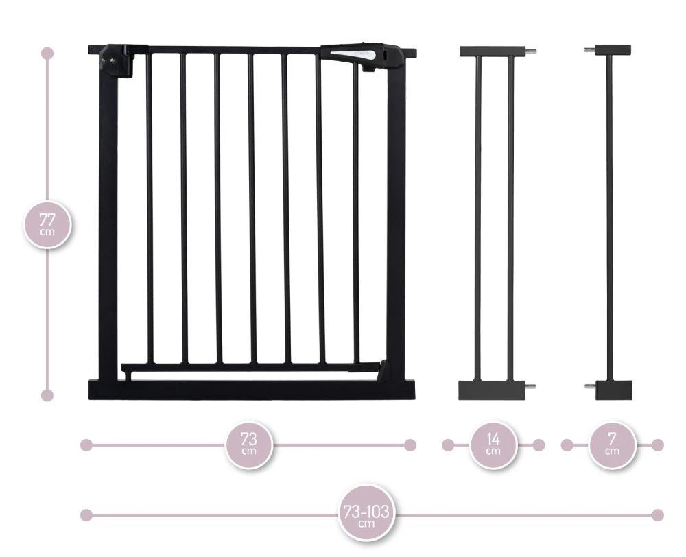 - Zábrana MoMi PAXI má široký rozsah nastavení. Její základní rozsah je od 75 do 82 cm. Souprava se dodává se dvěma přídavnými komponenty o délce 7 a 14 cm, díky nimž získáte šířku až 103 cm! Díky širokému rozsahu nastavení a vyměnitelným komponentům je zábrana MoMi PAXI univerzální a lze ji snadno přizpůsobit požadavkům Vaší místnosti