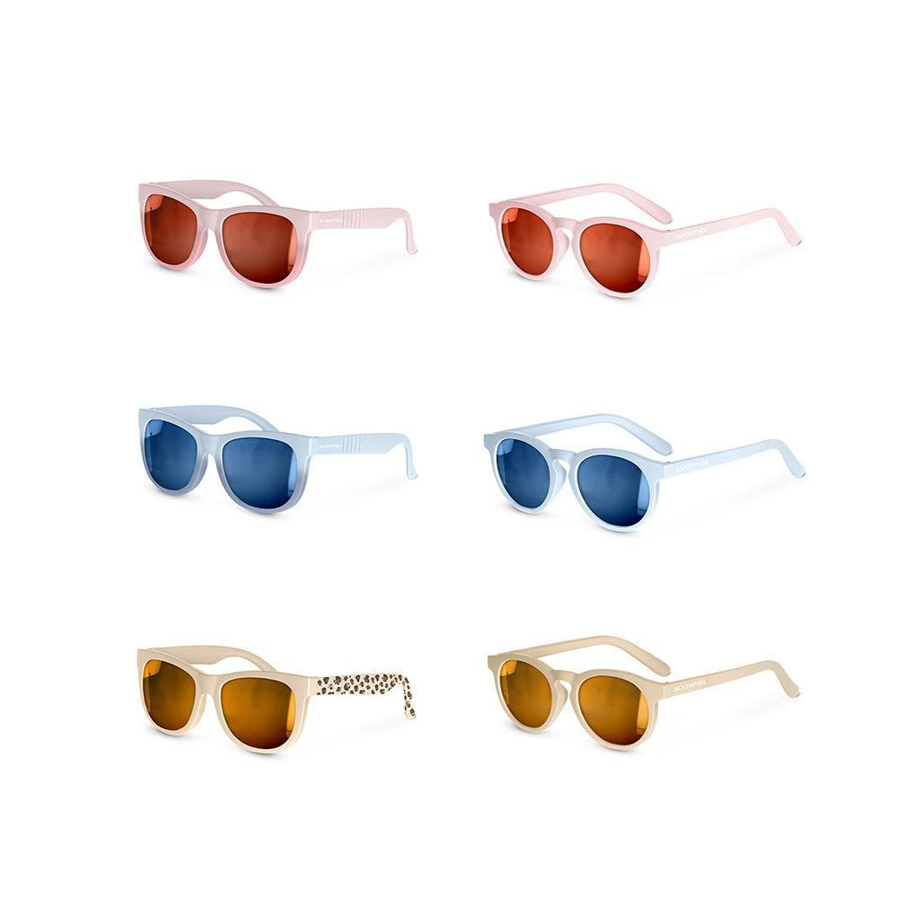 Důkaz, že být trendy není v rozporu s důrazem na bezpečnost, je ztělesněn v této nové kolekci stylových brýlí. Plastové ohebné obroučky ve velké barevné škále lze kombinovat s oblečením dětí a barevné čočky se zrcadlovým efektem jsou prakticky nerozbitné. Dostupné ve velikostech 0-12m, 12-24m, 24-36m, +36 měsíců, 3-8 let, kdy každá z nich splňuje konkrétní požadavky v každé fázi vývoje dětí. Všechny mají společný rys, kterým je jejich kulatý nebo hranatý tvar pro lepší přizpůsobení, protože v raném věku není kořen nosu dětí ještě zcela vytvořen. S jakýmikoli brýlemi z této kolekce mohou děti běhat a skákat bez obav, že se jejich brýle rozbijí. Mají také další bezpečnostní prvky, především pro velikosti +36 měsíců a 3-8 let, které jsou doplněny o šňůrku, která perfektně sedí na hlavě.