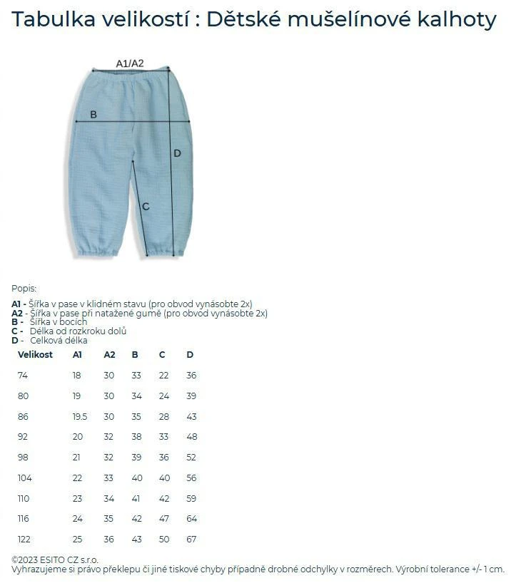 | Velikost | 74 / 80 / 86 / 92 / 98 / 104 / 110 / 116 / 122 |