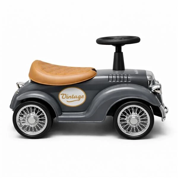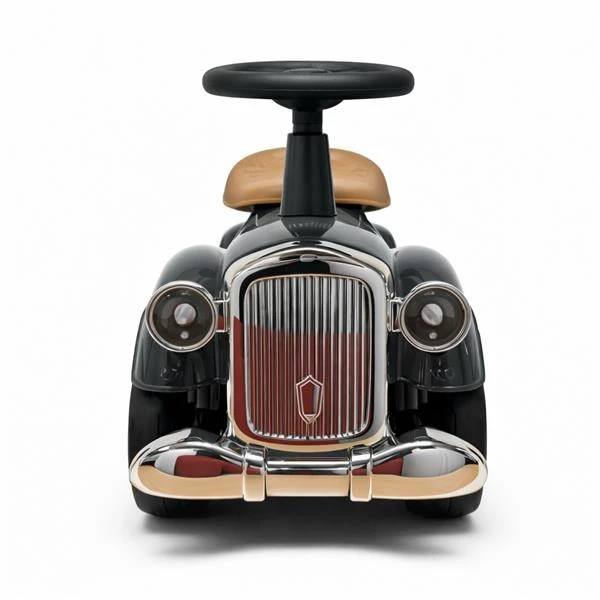 Retro autíčko může vaše dítě používat jako své první vozidlo s opravdovým volantem a klaksonem, dále jako kočárek s otevřeným úložným prostorem na hračky (malý kufr), imitací palivové nádrže na zadní části vozidla a přední částí auta - mřížkou ve stříbrné barvě.