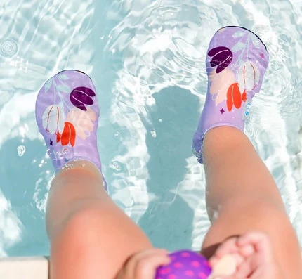 Jsou lehké, pružné a na noze téměř neznatelné, takže se v nich děti cítí přirozeně i při plavání. Zároveň ale spolehlivě chrání před ostrými kamínky, horkým pískem i rozpáleným povrchem kolem bazénu. Podrážka pomáhá snížit riziko uklouznutí na mokrém povrchu a boty tak přispívají k větší bezpečnosti při pohybu u vody.