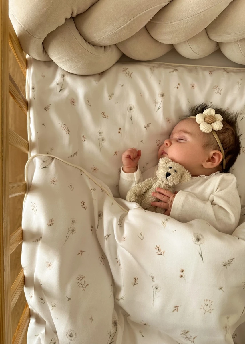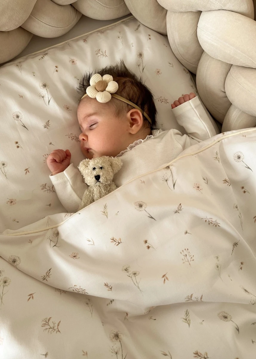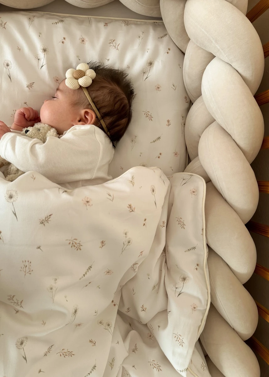 Set obsahuje dva díly: povlak na peřinku a povlak na polštář. Je ušitý z vysoce kvalitní saténové bavlny, která je mimořádně jemná, hebká a příjemná na dotek, díky čemuž je vhodná i pro citlivou pokožku miminek a malých dětí. Povlečení se zapíná na skrytý zip a je zdobeno dekorativní paspulkou, která dodává výrobku elegantní vzhled a zvyšuje jeho estetickou hodnotu.