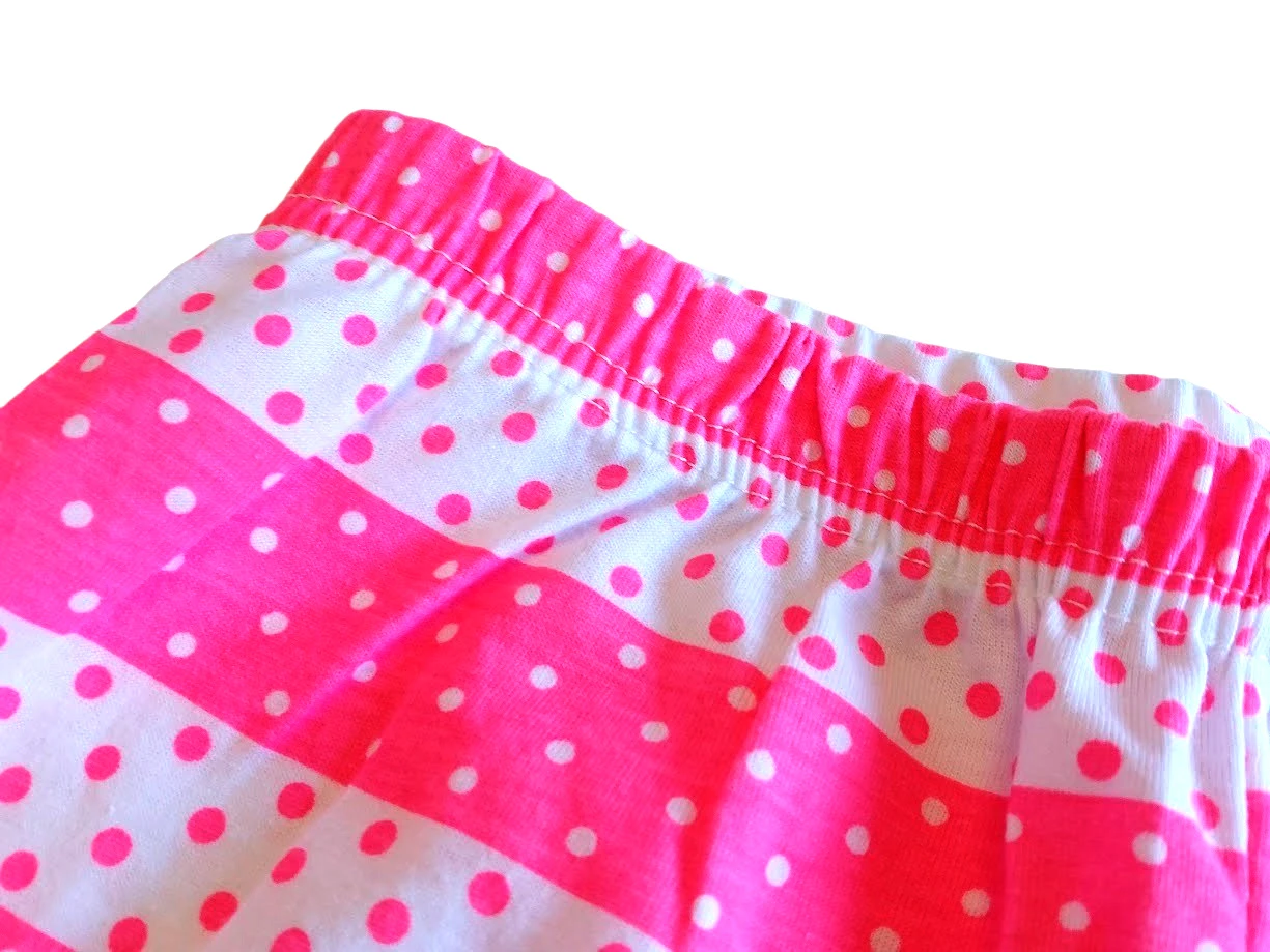 Design pyžama kombinuje bílý podklad s růžovými puntíky a výrazné růžovo-bílé pruhy na rukávech a nohavicích. Hlavním motivem je veselá Minnie s typickou mašlí, která dodává pyžamu hravý a roztomilý vzhled. Díky pohodlnému střihu je oblékání i svlékání snadné, což ocení nejen děti, ale i rodiče.